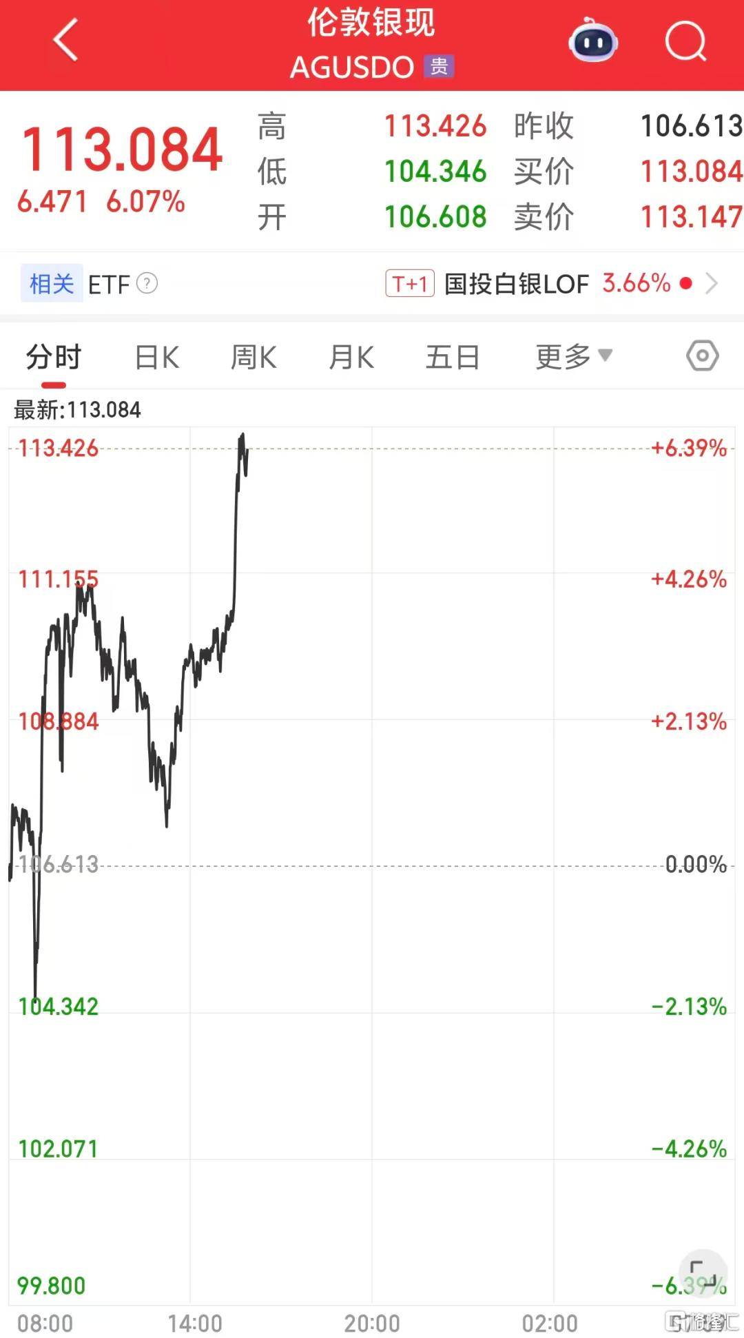 单日录得14%涨幅、做空白银的ETF爆发天量成交、高位跳水,12小时不到涨势卷土重来,截至到发稿,白银企稳强势上涨6%,站上113美元……