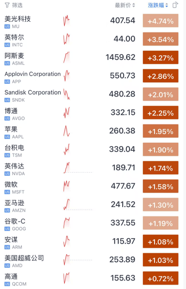 科技股集体大涨,美光科技领涨。消息面上, 美光科技将在未来十年向新加坡追加投资240亿美元,以扩大其制造能力。根据该公司的一份声明,美光科技将利用这笔资金建设一个新的NAND闪存工厂。该公司表示,这项新投资将创造约1600个工作岗位,晶圆产出预计将于2028年下半年开始。新工厂将部署人工智能和自动化。2025年初,美光科技已宣布在未来几年投资70亿美元,扩大其在新加坡的制造规模,以满足训练人工智能所需的先进内存芯片需求。