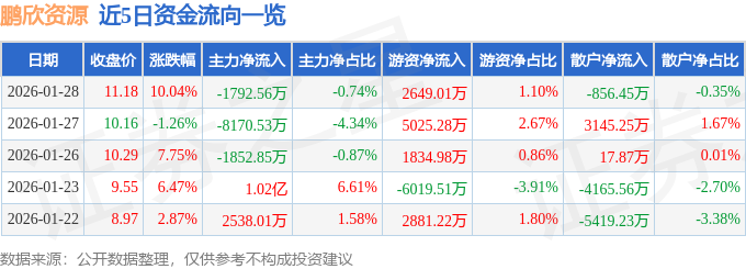 证券之星消息,鹏欣资源1月28日涨停收盘,收盘价11.18元。该股于13点2分涨停,10次打开涨停,截止收盘封单资金为1176.14万元,占其流通市值0.05%。