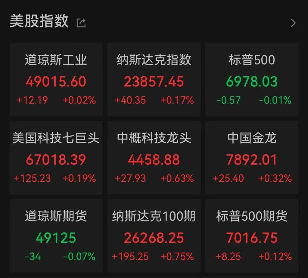 截至当天收盘,道指数涨幅为0.02%,标普500跌幅为0.01%,纳指涨幅为0.17%。