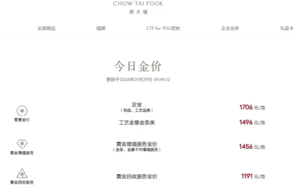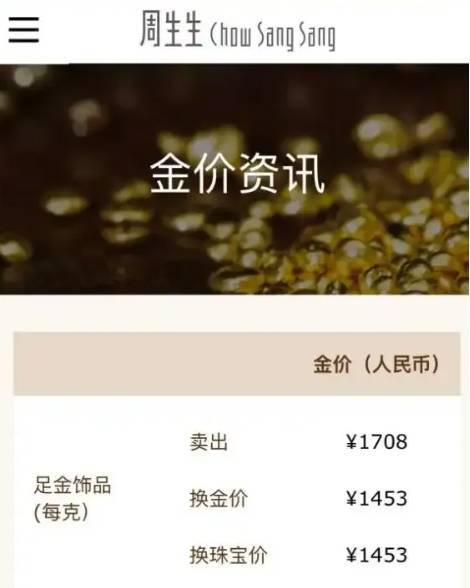 受此影响,国内各品牌金饰价格也一路走高。例如周生生报价1708元/克,上涨94元/克;周大福报价1706元/克,上涨88元/克;老庙黄金报价1722元/克,上涨104元/克;老凤祥为1713元/克,上涨93元/克。