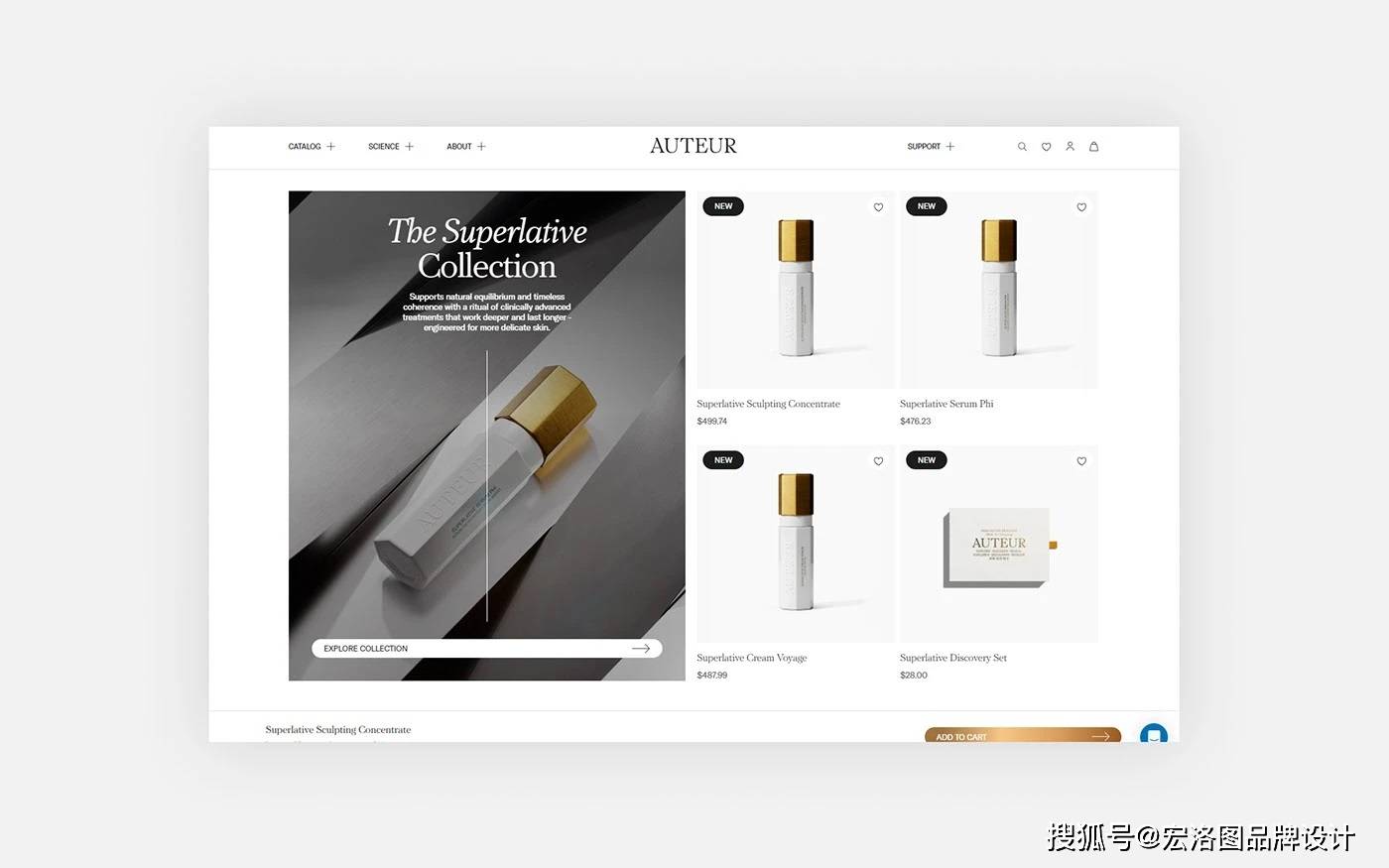 AUTEUR高端护肤「非凡系列」包装焕新呈现。极简瓶身勾勒未来轮廓,鎏金细节灵动点睛,巧妙融合奢华质感与简约美学,在克制中传递专属格调。设计以匠心平衡经典与前瞻,诠释品牌对视觉语言与品质细节的持续探索,静谧中见不凡。