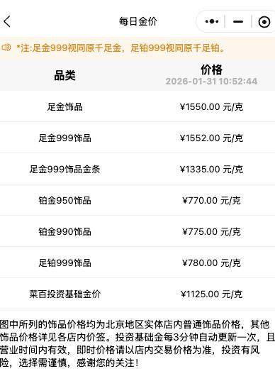 ▲菜百首饰展示的最新金价