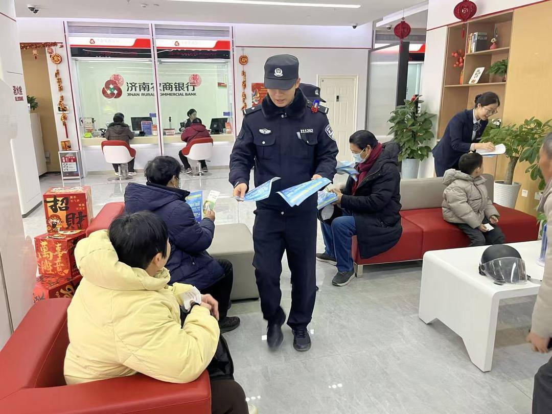 为有效遏制电信网络诈骗案件高发态势,切实提高群众防范意识与识诈能力,全力守护辖区群众财产安全,1月30日,历城分局郭店派出所组织民辅警深入辖区银行网点,开展“反诈宣传进银行 守护群众钱袋子”主题宣传活动。