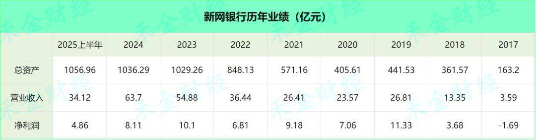 截至2025年6月末,新网银行总资产1056.96亿元,较2024年末增1.99%。