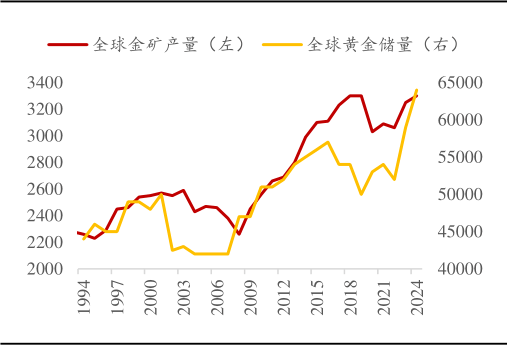 从产业周期观察,全球矿产金供给已进入瓶颈期。过去十年全球黄金发现量显著下降,大型金矿品位持续下滑,而ESG约束及资源国政策风险推高了开采成本。从数据上看,2024年全球黄金储量与产量已经出现倒挂。