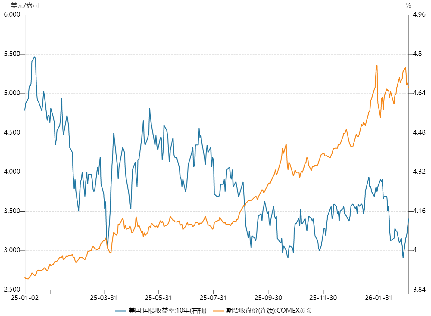 图:国际金价与美债呈负相关