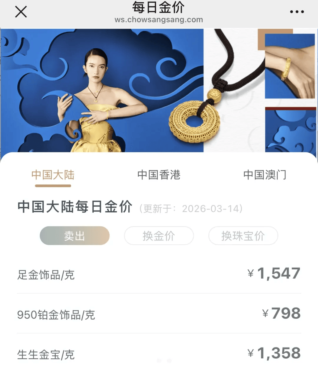 足金饰品报价1547元/克