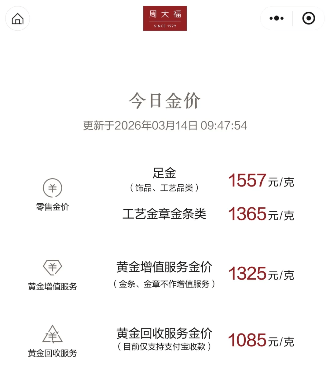 周大福黄金饰品报价