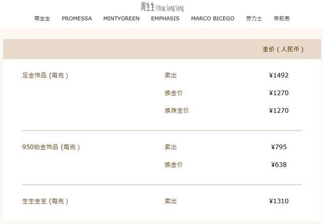 周生生金饰1492元/克,单日跌55元。