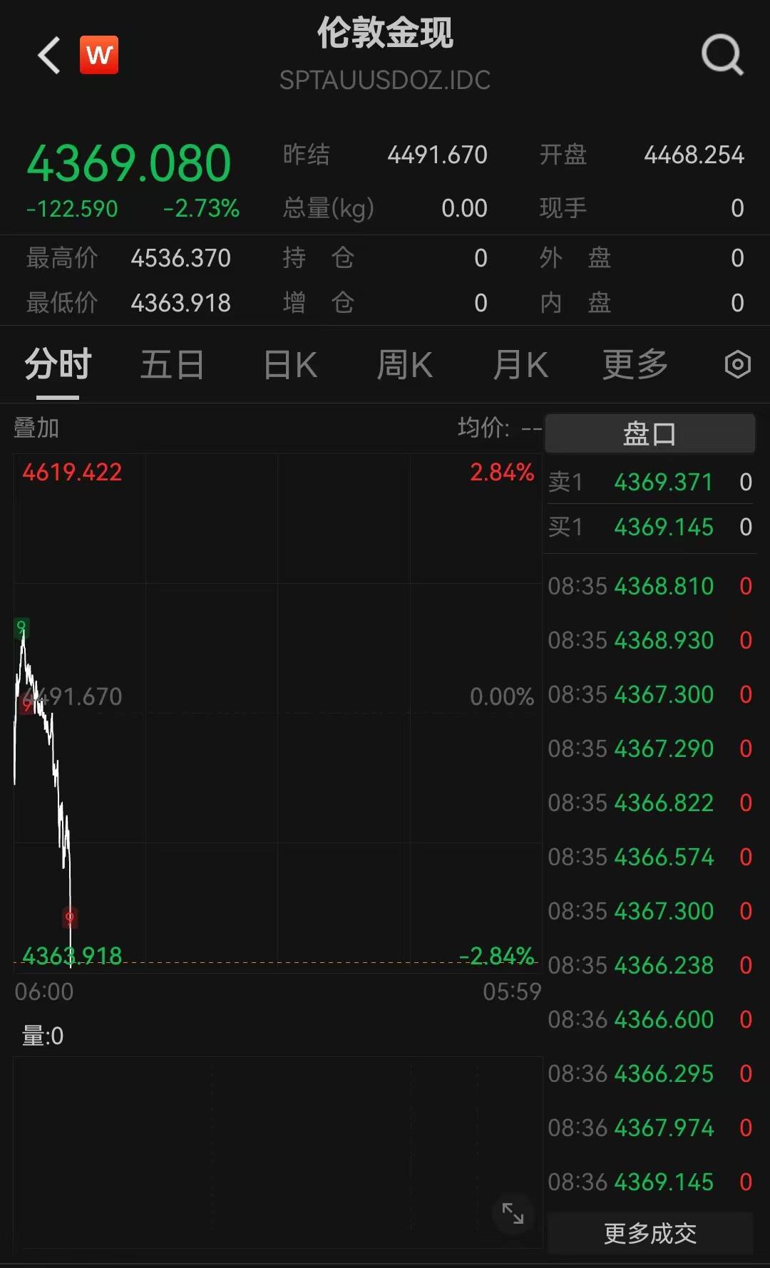 3月23日上午,伦敦金价短暂拉升后,迅速下跌。Wind数据显示,截至北京时间8:36,跌幅达2.73%。