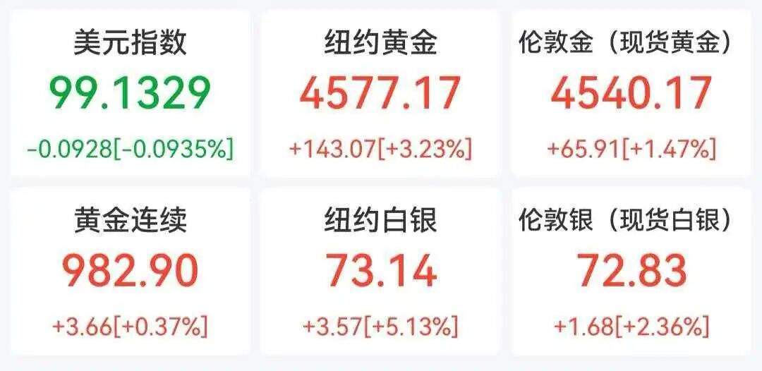 值得一提的是,现货黄金、白银上涨,美元指数下跌。