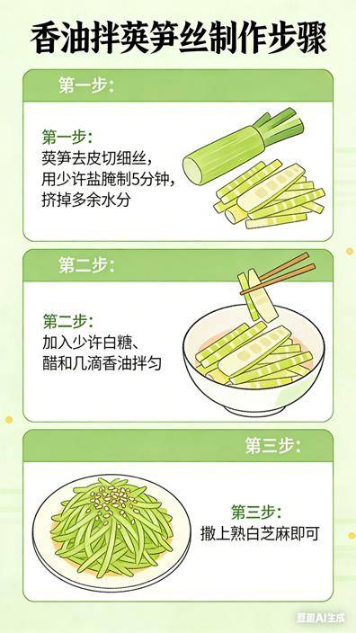 ✅营养亮点:莴笋爽脆解腻、生津开胃,餐前吃唤醒味蕾;香油补维E和不饱和脂肪酸,助力大脑发育。