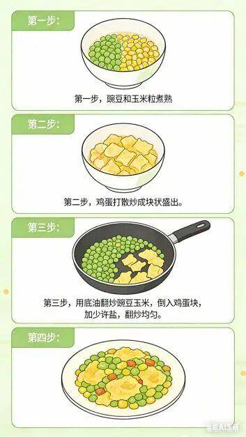 ✅营养亮点:豌豆和玉米富含叶黄素和玉米黄质,能有效过滤有害蓝光,保护视力。搭配鸡蛋,蛋白质更全面。