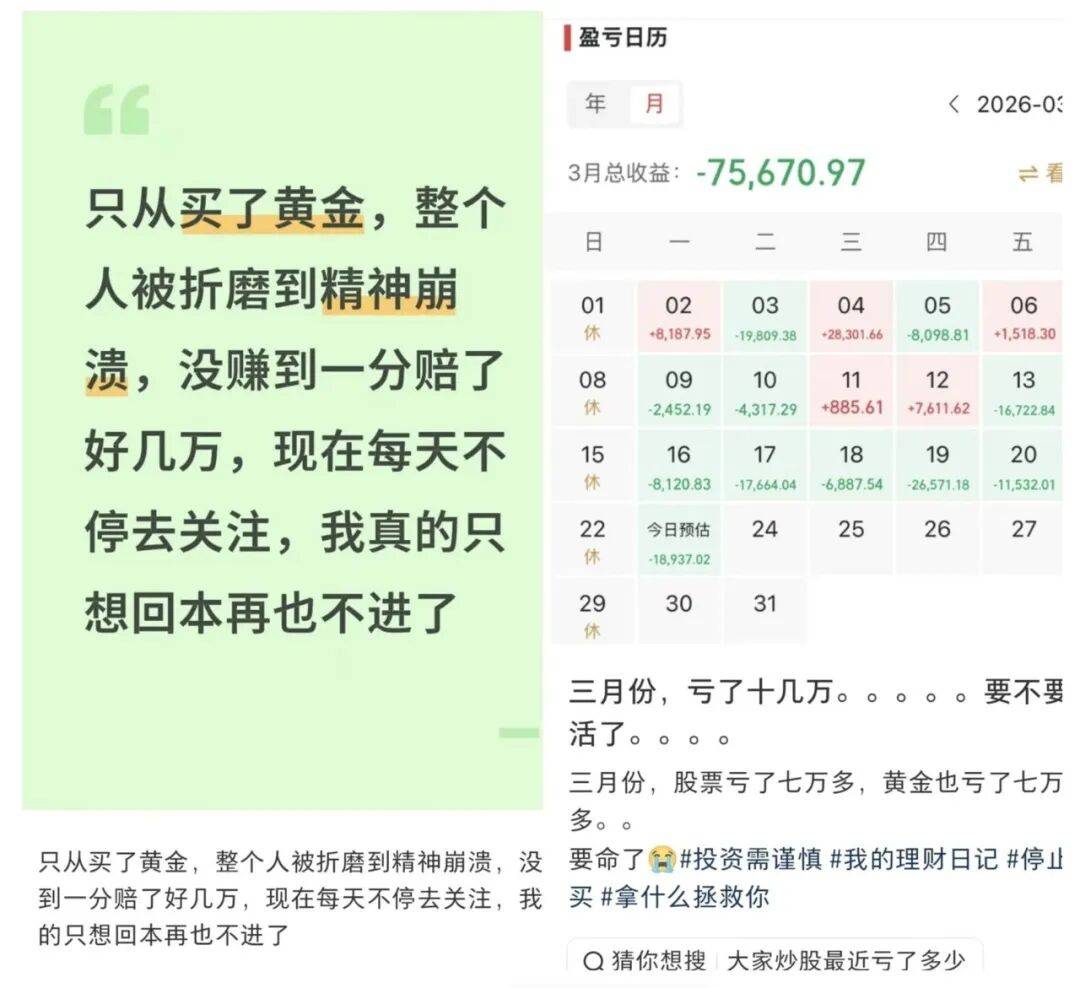“自从买了黄金,整个人被折磨到精神崩溃,还亏了好几万”。