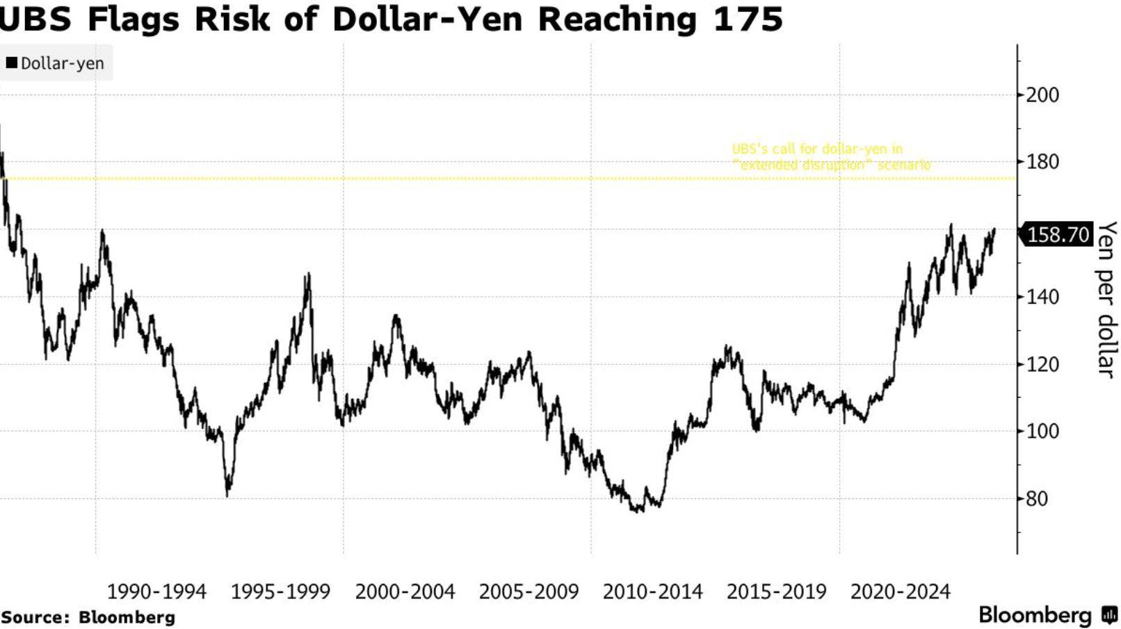 瑞银集团(UBS Group AG)的策略师认为,即便日本官员加大干预言论力度,日元的跌势仍将持续,他们预计在“长期动荡”的情景下,美元兑日元(159.46,0.6700,0.42%)汇率到年底将达到175。