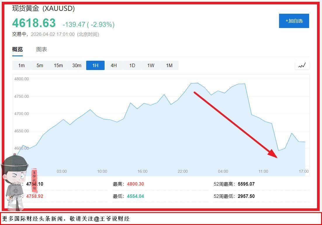 王爷说财经讯: 踩踏式撤退!黄金闪崩4%,金价失守4600美元关口!
