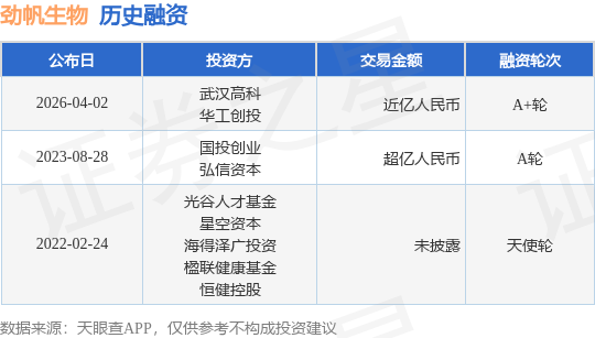 证券之星消息,根据天眼查APP于4月2日公布的信息整理,劲帆生物医药科技(武汉)有限公司A+轮融资,融资额近亿人民币,参与投资的机构包括武汉高科,华工创投。