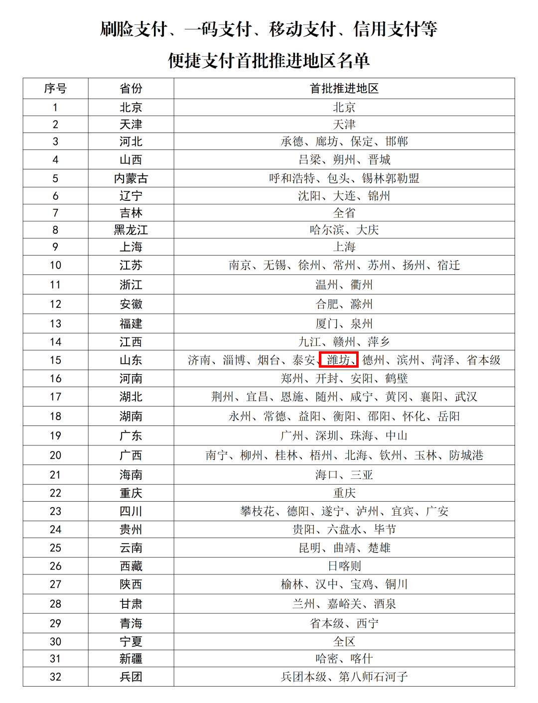 为切实解决群众看病缴费“多次排队”“排长队”等堵点痛点,国家医保局部署推进刷脸支付、一码支付、移动支付、信用支付等便捷支付工作,选择119个统筹地区作为首批推进地区,力争大幅压减排队缴费时长,有效缓解参保群众排队奔波。其中,潍坊市入选便捷支付首批推进地区名单。