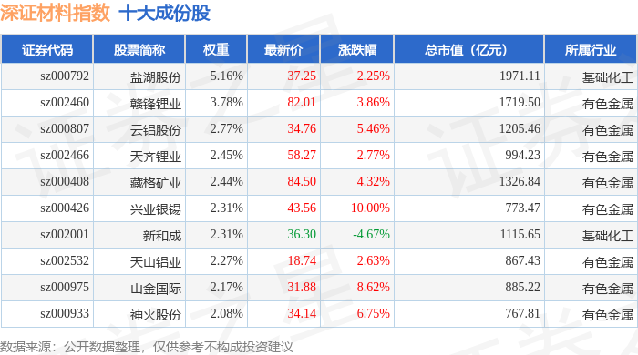 深证材料(399614)指数十大成份股详情如下: