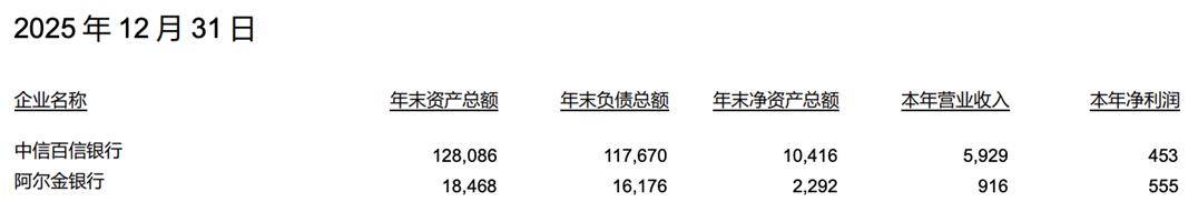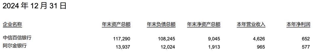 中信百信银行2024~2025年财务数据,来源:中信银行2025年审计报告