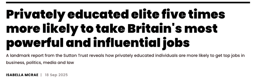 萨顿信托基金会(Sutton Trust)最新发布的一份分析报告发现,受过私立教育的人更有可能在英国政治、商业、媒体和法律领域获得高层职位,他们成长为英国社会精英的可能性比其他人高出5倍,私立学校毕业生考上牛津或剑桥大学的可能性则是其他人的21倍。