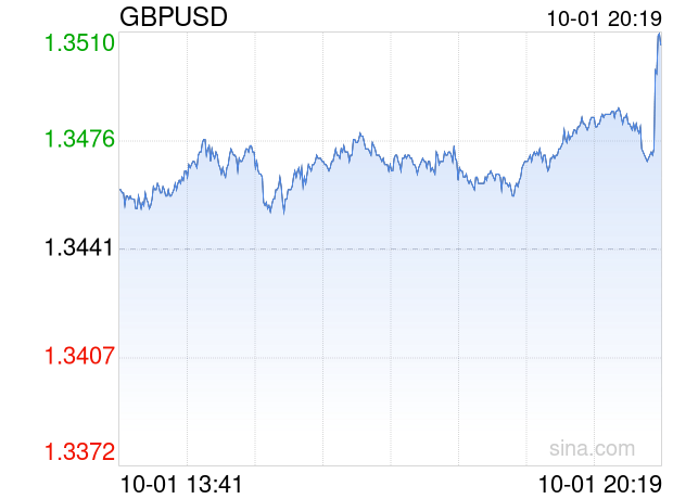 新浪外汇消息2025年10月01日,截至20时19分,外汇市场上英镑兑美元汇率突破1英镑兑换1.3511美元。涨幅为0.5208%