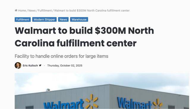 【环球网科技综合报道】据外媒FreightWaves报道,美国北卡罗来纳州于周二宣布,沃尔玛计划在该州投资3亿美元,新建一个专注于大型商品配送的物流中心,未来可将庭院家具、割草机等大件商品直接配送至消费者手中,并最快实现次日送达。