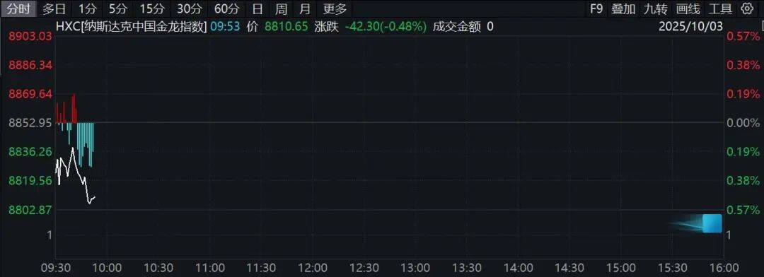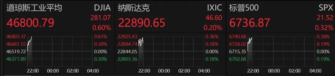 10月3日,美股三大指数小幅高开,道琼斯指数涨0.18%,标普500指数涨0.14%,纳斯达克综合指数涨0.13%。开盘后,道指小幅拉升。