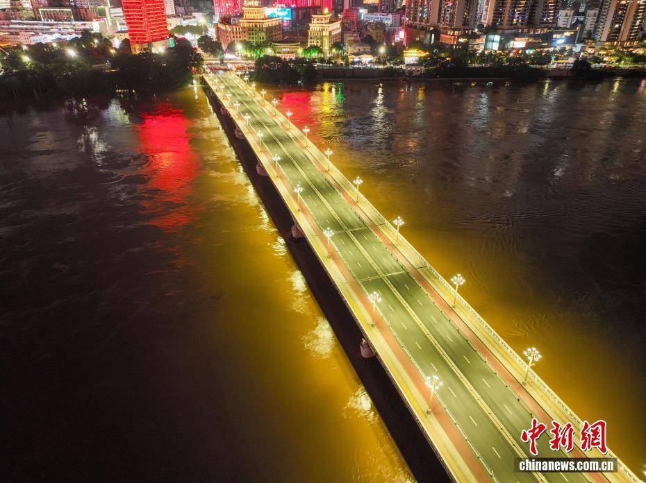 广西南宁邕江水位持续上涨 邕江大桥交通管制