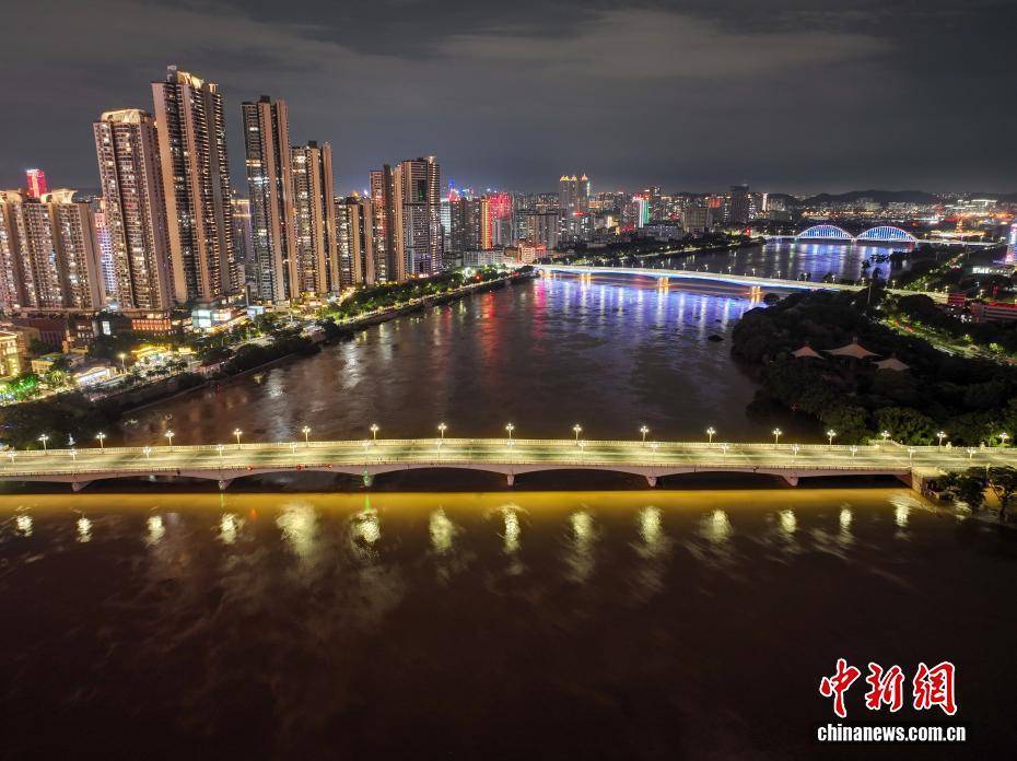 10月3日,受左江、右江持续来水影响,广西南宁邕江水位持续上涨,邕江大桥实施交通管制。中新社记者 陈冠言 摄