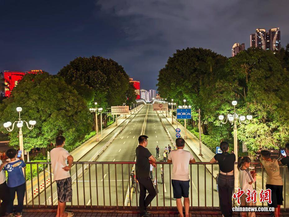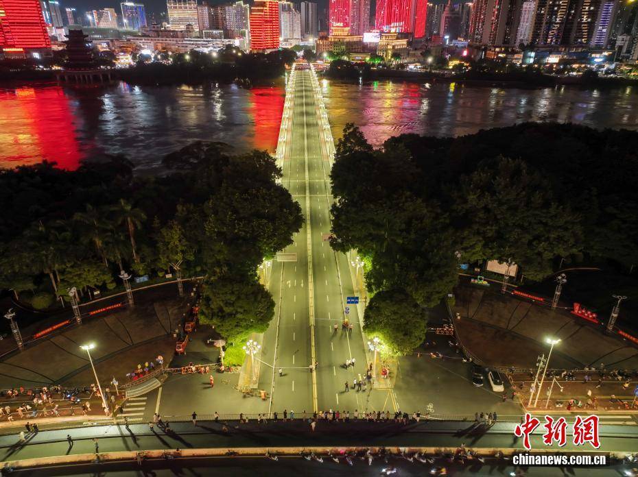 10月3日,广西南宁市应急管理委员会发布《关于对邕江大桥实施临时交通管制的通告》:受左江、右江持续来水影响,预计2025年10月3日夜间至4日凌晨,郁江南宁水文站河段将出现76.5米左右的洪峰水位,超警戒水位3.5米,为确保邕江大桥交通安全,决定于10月3日20时起对邕江大桥全段实施临时交通管制,双向禁止机动车、非机动车和行人通行,临时交通管制解除时间视情况另行通知。图为实施交通管制的邕江大桥。(无人机照片)中新社记者 陈冠言 摄