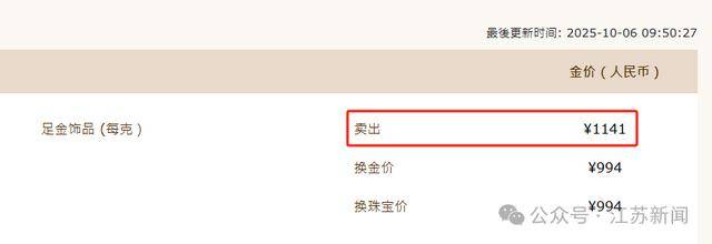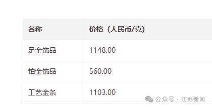 6日国内黄金饰品价格对比显示,国内多家黄金珠宝品牌公布的境内足金首饰价格跟随国际金价创纪录涨势,其中老庙黄金涨至1148元/克,周生生足金饰品涨至1141元/克。
