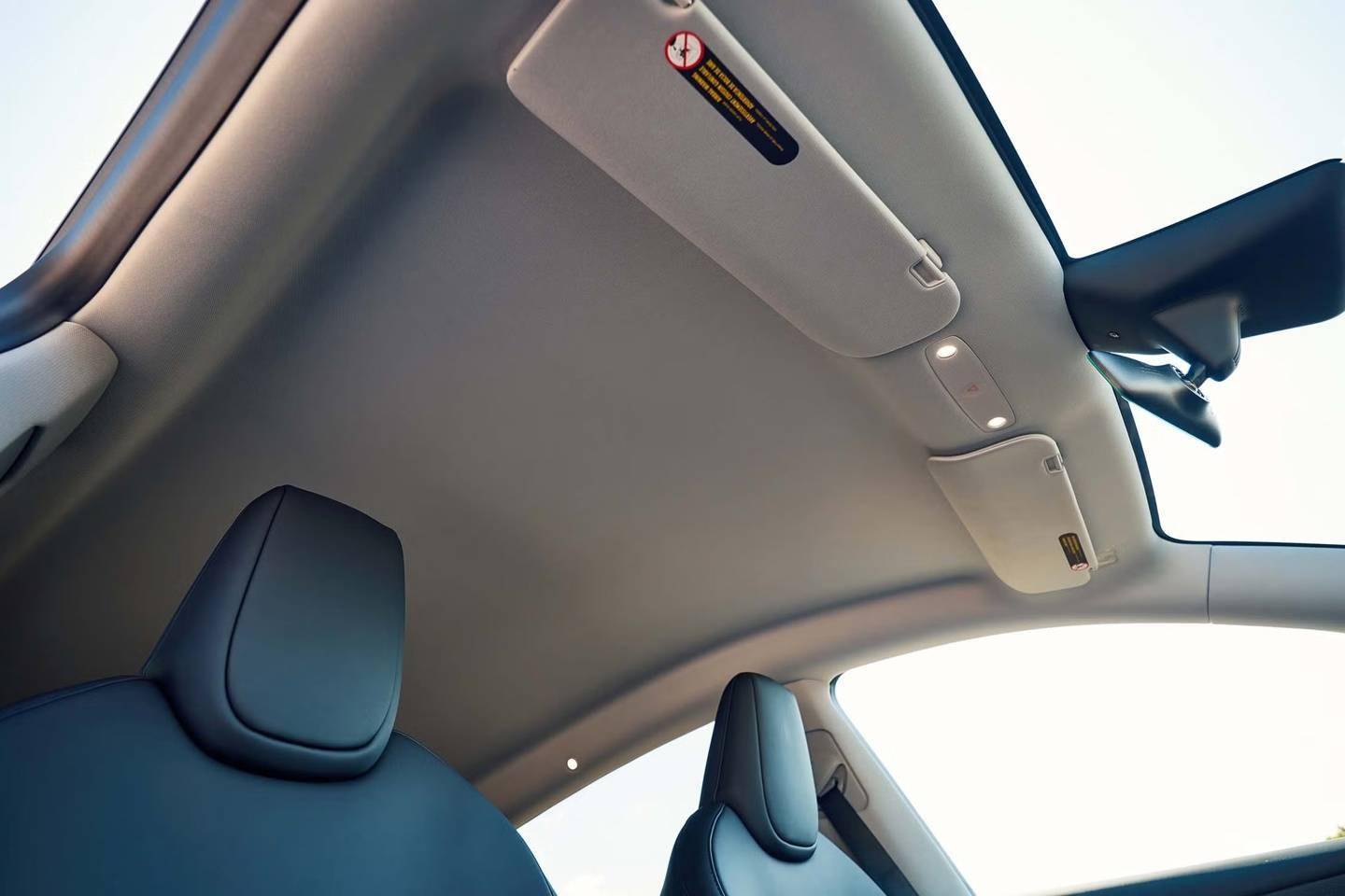 Model Y 标准版最独特的改动在于其全景玻璃车顶。尽管外部保留了玻璃材质,但车辆内部却安装了完整的顶棚和隔音材料。特斯拉方面称,相比重新设计和安装金属车顶,这种“封印”玻璃天顶的方式成本效益更高。