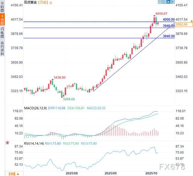 3840美元核心支撑位:连接近期整理区间的关键支撑,失守该点位可能危及当前上升趋势,令动能转向温和看跌。