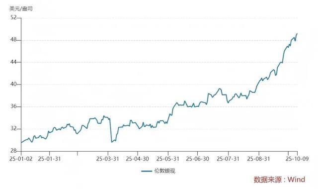 10月9日,现货白银价格突破50美元/盎司,为历史首次。创近14年新高,日内涨超4%。
