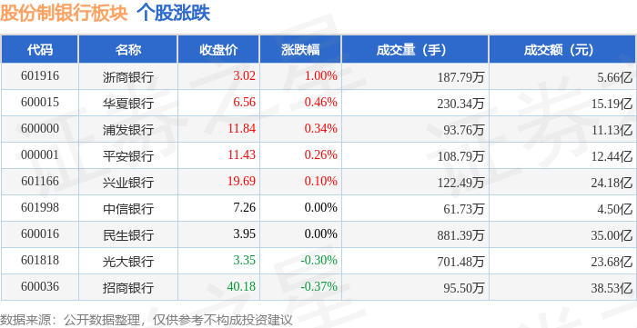 证券之星消息,10月10日股份制银行板块较上一交易日下跌0.01%,招商银行领跌。当日上证指数报收于3897.03,下跌0.94%。深证成指报收于13355.42,下跌2.7%。股份制银行板块个股涨跌见下表: