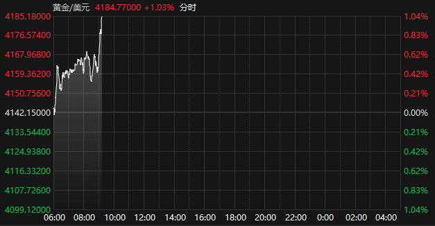 上证报中国证券网讯 据Choice数据,10月15日,国际现货黄金早盘震荡拉升,截至9:13报4184.77美元/盎司,日内涨超1%,再创历史新高。