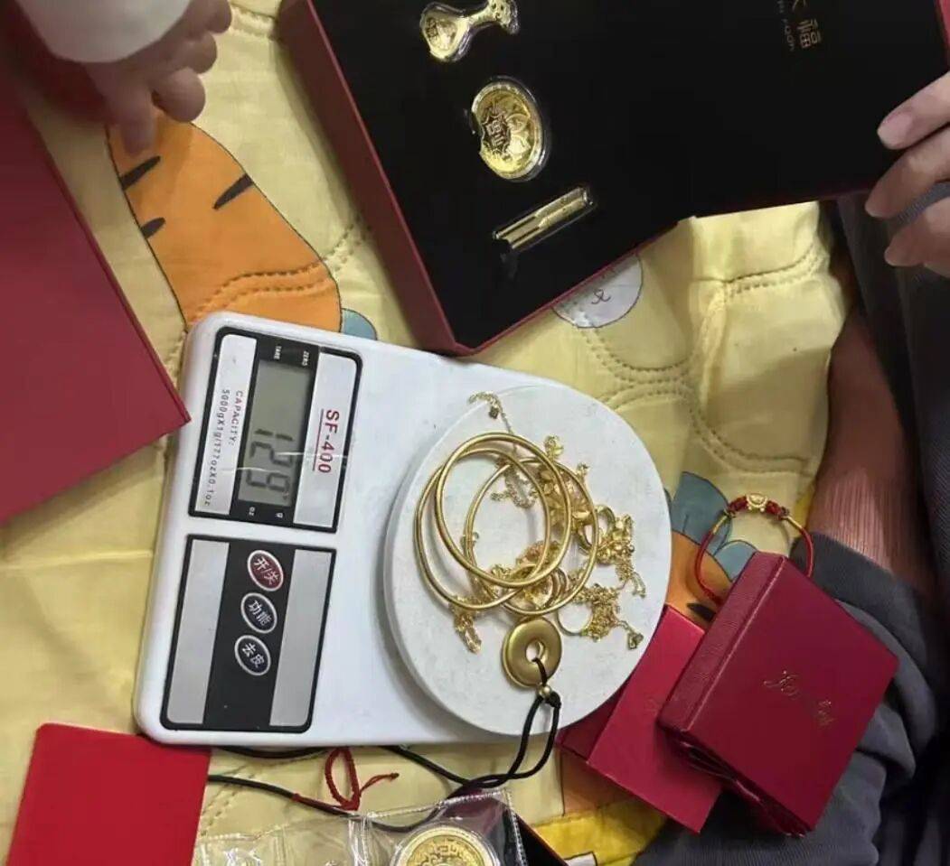 原先生告诉记者,2023年前后,他和妻子结婚前,他购买金条专门打了3个金手镯,以及其他金饰,“1个30g的,两个20g的。”