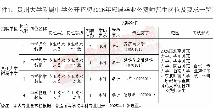 01.贵州大学附属中学招聘