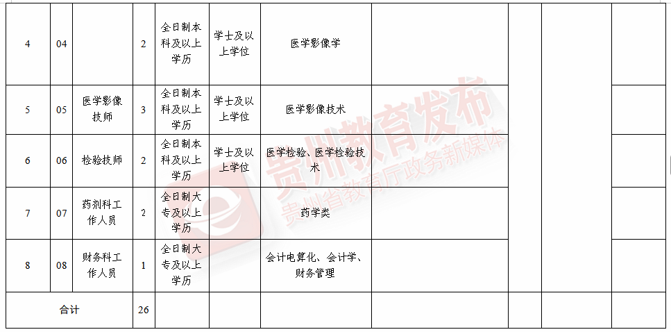 ☆招聘人数:黔西南州人民医院拟面向社会公开招聘卫生专业技术人员 38名。岗位表——