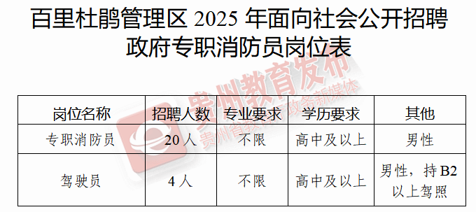 ☆报名时间:2025年10月11日至2025年10月22日。报名地点:百里杜鹃管理区消防救援大队(百里杜鹃管理区鹏程街道庙脚3期移山大道旁)。