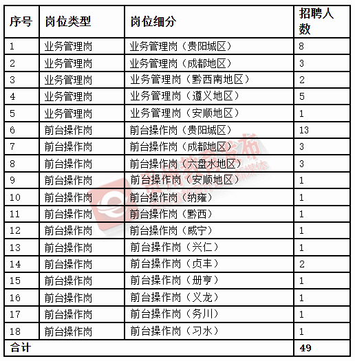 ☆招聘人数:分支行业务管理岗 19人、分支行前台操作岗 30人。岗位表——