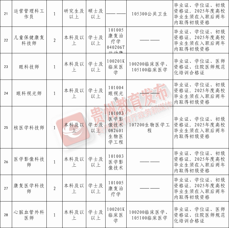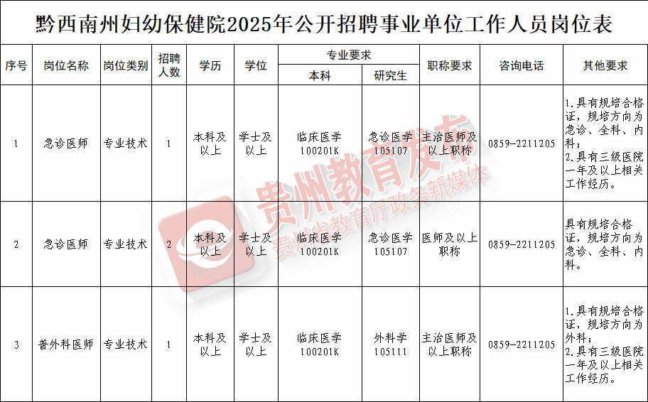 ☆招聘人数:2025年黔西南州妇幼保健院计划面向社会公开招聘工作人员 11名。岗位表——