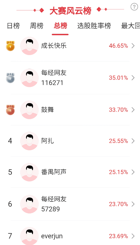 在每日经济新闻App举办的掘金大赛中,第75期比赛于周五收官,在市场表现不佳的情况下,一些参赛选手表现出色,其中冠军收益率为46.65%,亚军收益率为35.01%,季军收益率为33.70%。本期比赛共336名选手取得正收益,他们都将获得现金奖励。