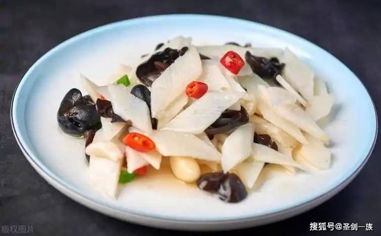 1. 木耳冷水发2小时,去根后撕成一口大小,太大容易“藏”山药片,口感不搭。