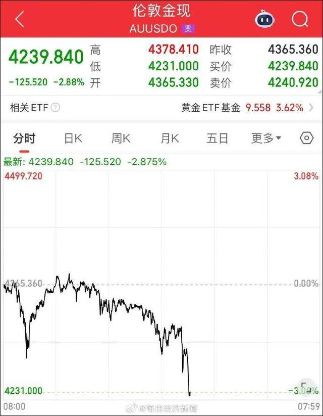 17日晚间,现货黄金跌2.88%,报4239.84美元/盎司;现货白银跌4.37%,报51.895美元/盎司。