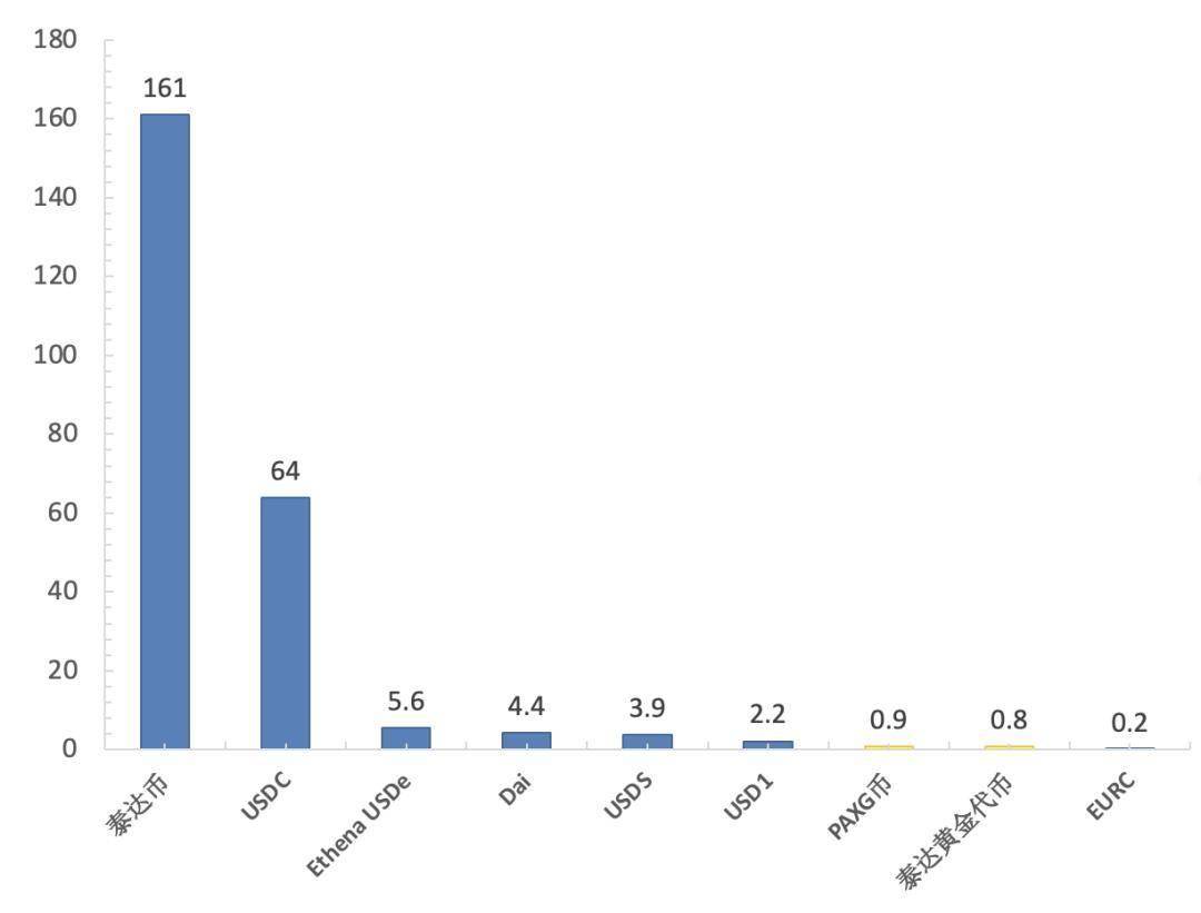 图:全球主要稳定币总市值(单位:10亿美元;截至2025年7月)资料来源:DefiLlama,36氪