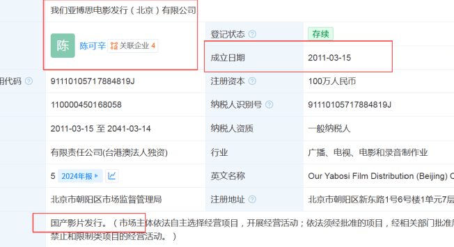 之后成立的亚博思电影发行(北京)有限公司,作为台港澳法人独资企业,让他能深度参与内地电影的制作、发行全流程。