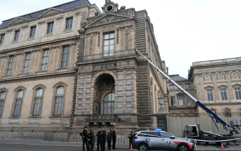 法国方面消息称,嫌犯共有4人,其中2人身穿工人装和穿黄色反光背心,利用升降吊篮从外部进入卢浮宫,另2人驾驶摩托车接应